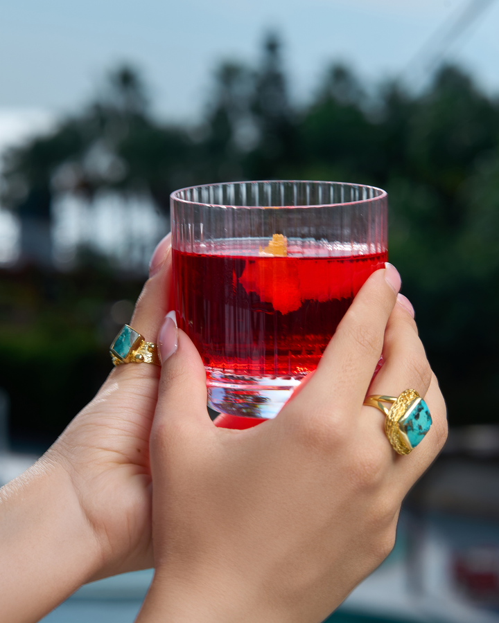 A tiny turquoise arcade of sideways fun—cats, jokers, boats and bold little fish—pulling you off the main path and into new waters, where the misfits dance and your stories turn electric. Sterling silver dipped in gold.