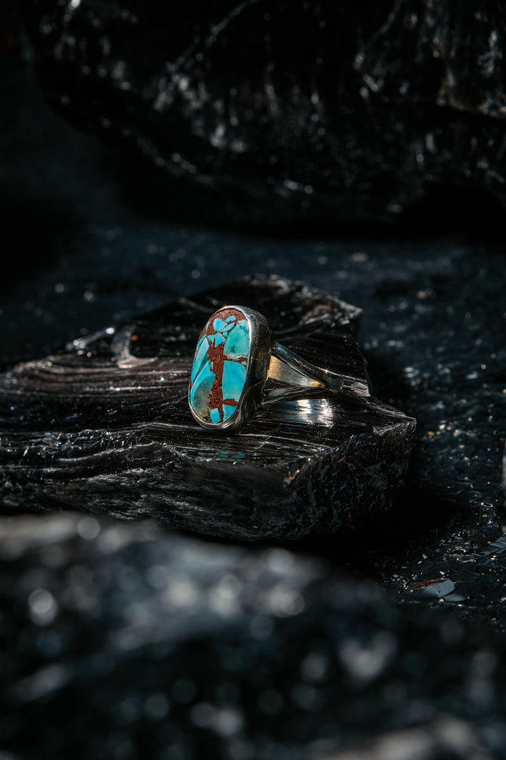 Material honesty: This is not rare Persian turquoise like the rest of our line, this matrix was reconstructed using turquoise chips, chosen for the way they land like art. When the fragments hit like this, we bite: loyal, happy, and ready to guard your heart.